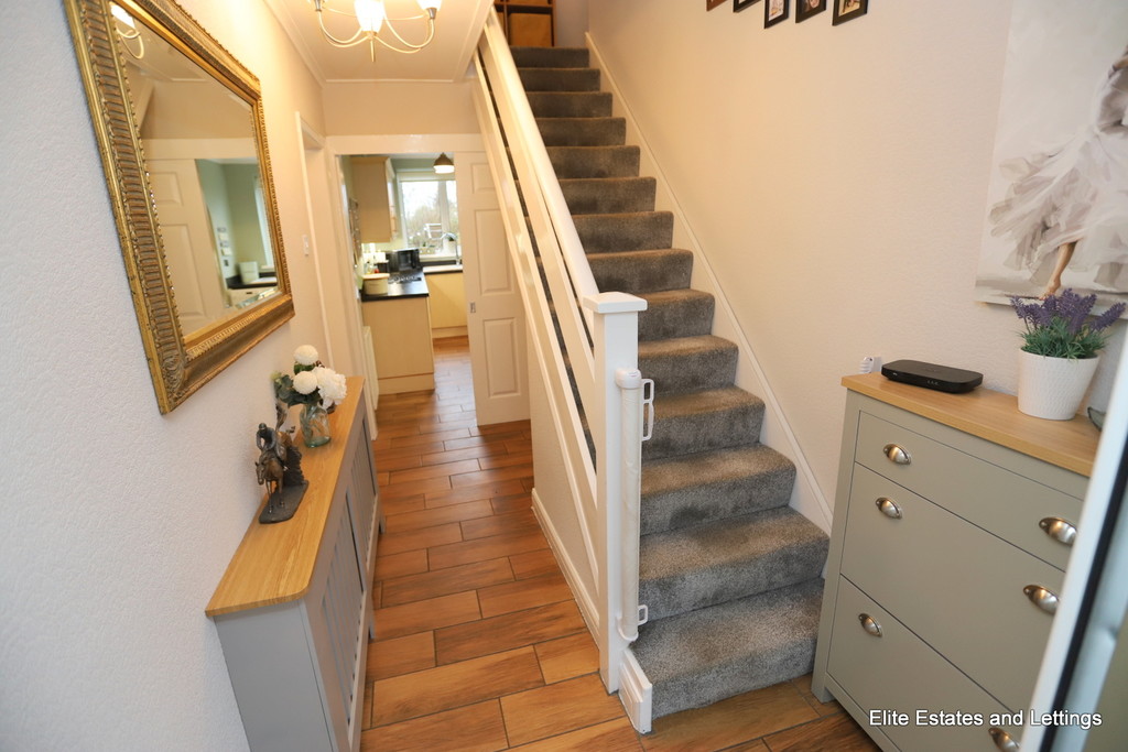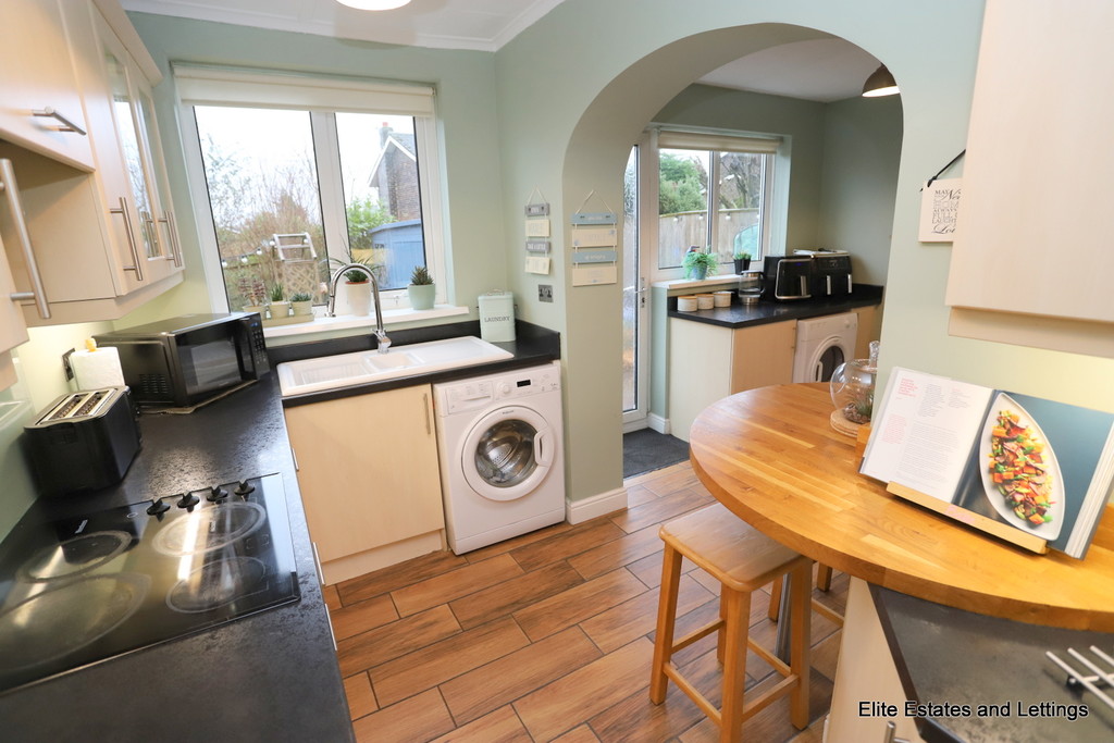 The accommodation begins with a light and welcoming entrance porch, leading into a bright central hallway with staircase access to the first floor. The ground floor living space comprises a generous lounge featuring an attractive bay window, which flows seamlessly through an archway into the dining room. From here, patio doors open directly onto the rear garden, creating a fantastic space for entertaining and socialising. Completing the ground floor is a well-appointed kitchen, fitted with modern units and complemented by a convenient breakfast bar.