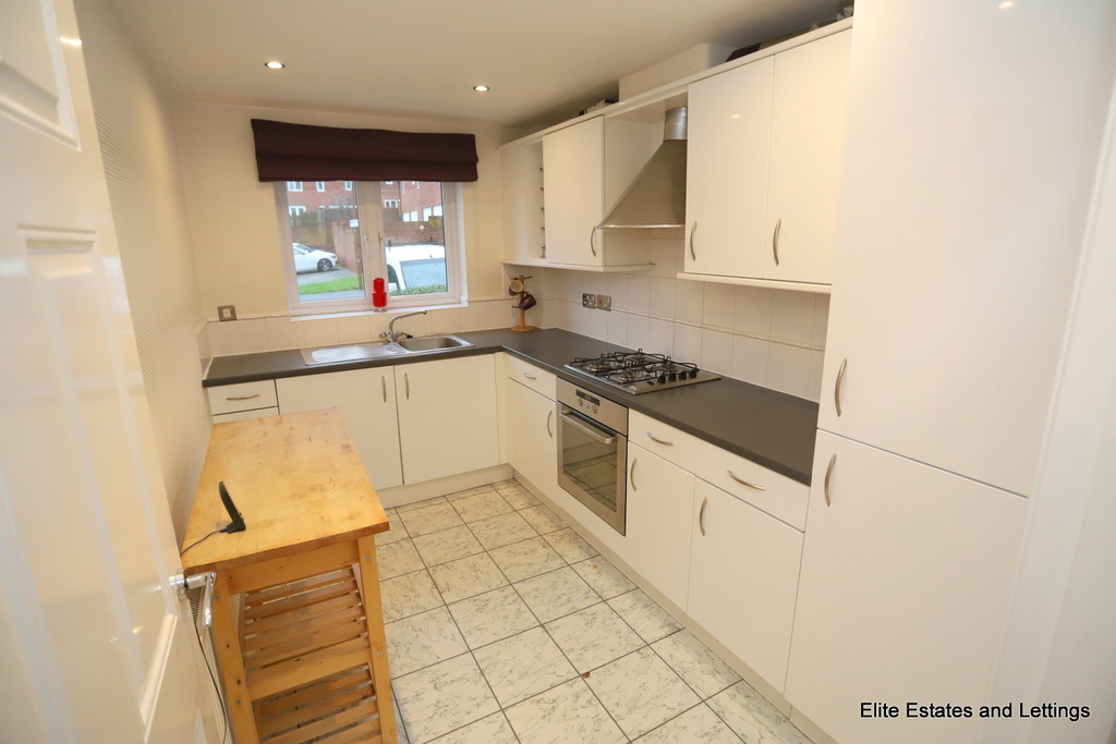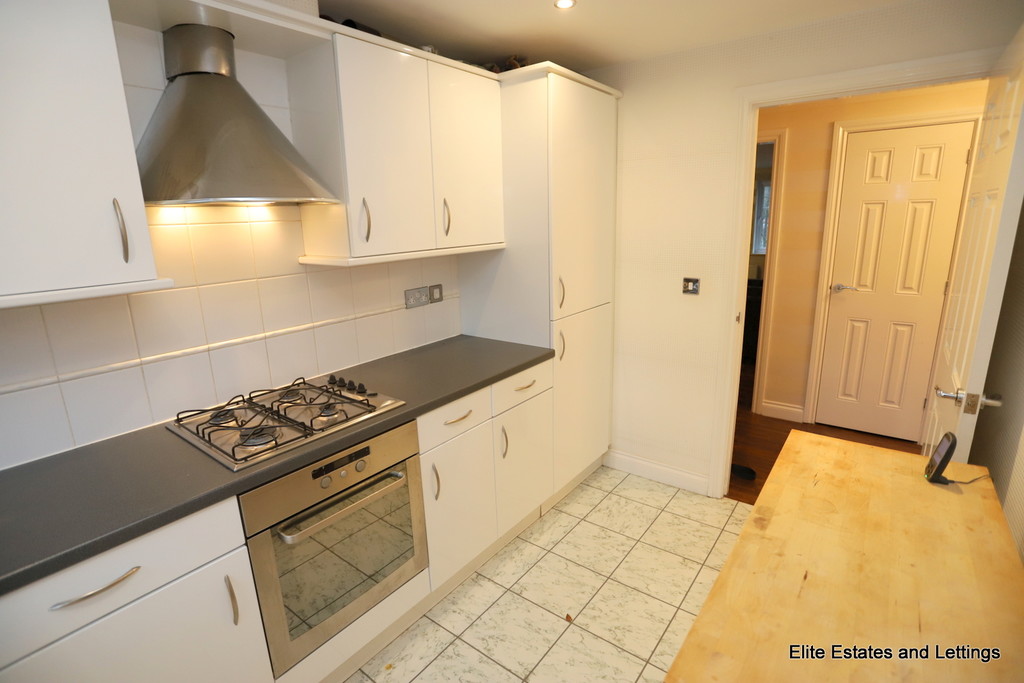 Kitchen 10'7" x 7'1" (3.23m x 2.16m). Double glazed window facing the front. Single radiator, part tiled walls, downlights. Roll top work surface, fitted wall and base units, stainless steel sink, integrated electric oven, integrated gas hob, stainless steel extractor, integrated washing machine.