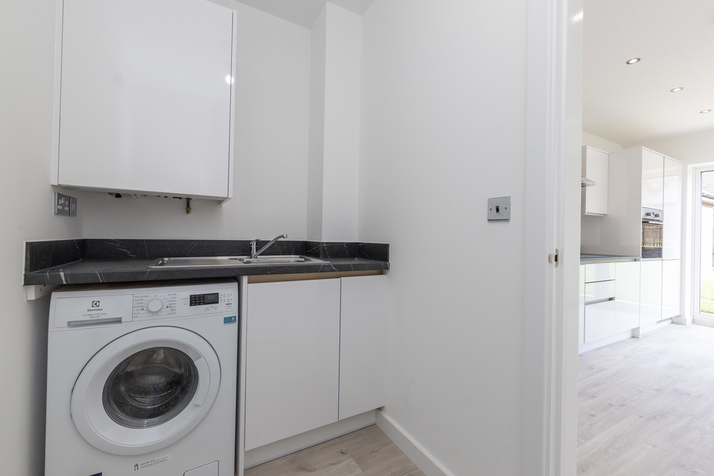 Step inside to a welcoming and spacious hallway leading to a bright, generously sized open-plan kitchen and dining area equipped with integrated appliances and an upgraded Novus kitchen with upgraded beautiful kitchen worktops. The room is enhanced by elegant bi-fold doors that open seamlessly onto the rear garden, creating a perfect space for entertaining and family gatherings. Adjacent to this is a separate, comfortable living area with stylish French doors opening to the garden. An additional reception room offers flexible living space, ideal as a home office or study. Completing the ground floor are a convenient WC, two storage cupboards, and a utility room with sink.