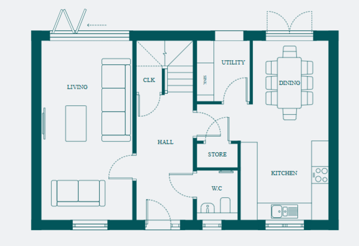 The property comprises of a welcoming hallway which leads to a light and spacious kitchen-diner featuring an Omega Kitchen with integrated appliances and open plan dining. This room also includes French doors opening out onto the spacious enclosed rear garden, making it an ideal space for socialising. Beyond is a separate living/relaxing area leading to the rear garden through elegant bi-fold doors. The WC, an under-stairs cloakroom, a separate storage cupboard, and a utility room with sink complete the ground floor.
