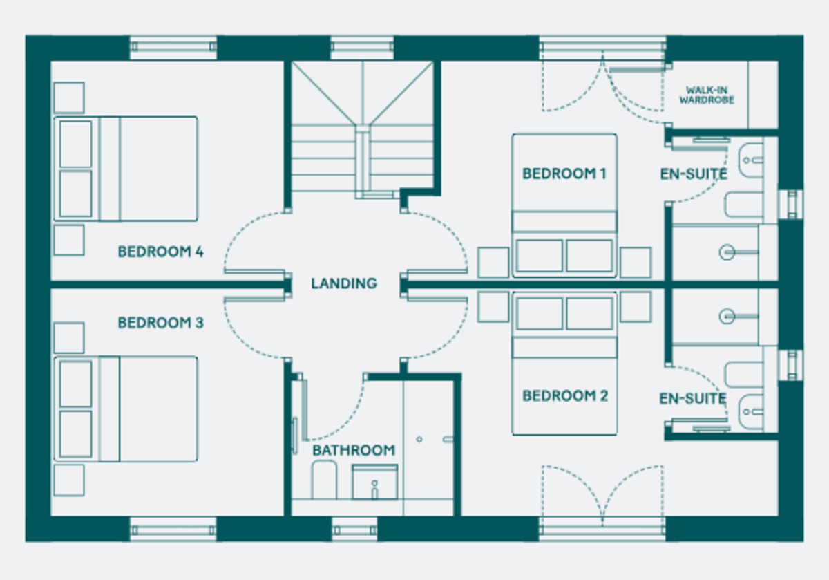 To the first floor a generous master bedroom with separate ensuite and walk-in wardrobe provides ample space. Bedroom two is complete with an ensuite. Bedrooms three and four also offer ample space. The contemporary style family bathroom with bath and shower over completes the first floor.