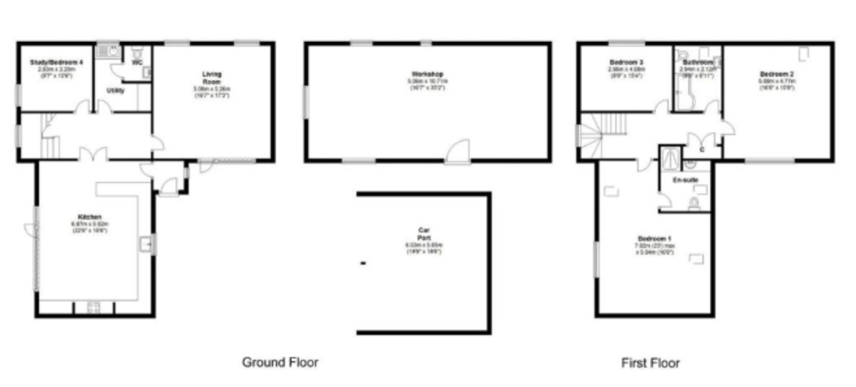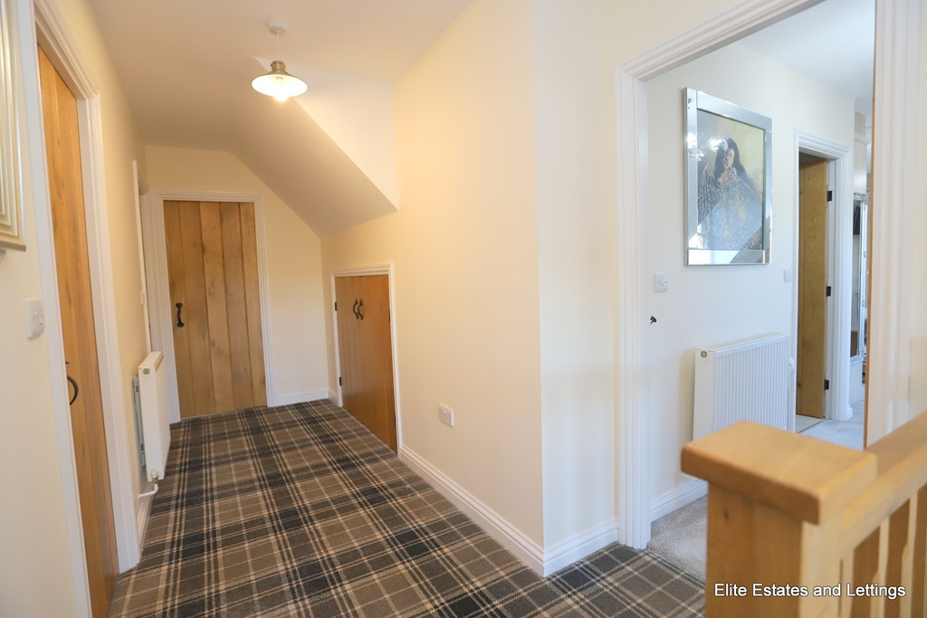An impressive reception hall, finished with oak flooring and a striking oak staircase, leads to the first floor. Here you will find three generously sized double bedrooms, including a master suite with a well-appointed en-suite shower room. All bedrooms benefit from fitted wardrobes and enjoy picturesque views across the surrounding countryside. A stylish family bathroom with full-height tiling and a shower over the bath completes the first-floor accommodation.