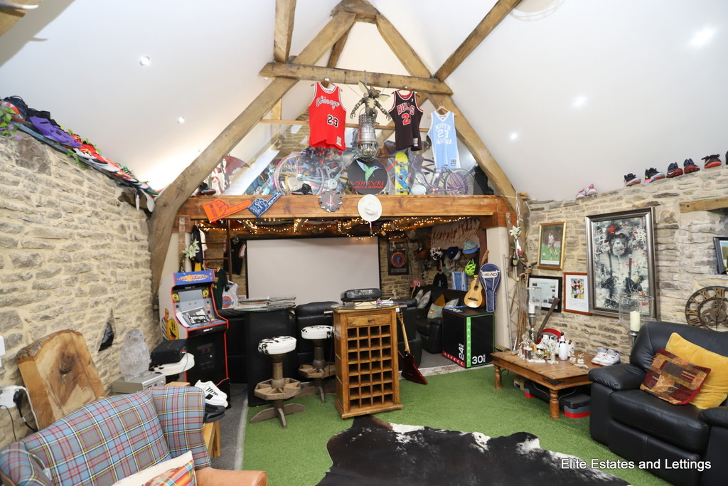 Externally, the mature rear gardens offer further outdoor space and stunning views, perfect for entertaining, featuring a large heated seating area, golf putting green and separate patio. In addition, there is ample parking provided via a block-paved driveway and a detached double garage with electric roller doors. Additionally, the property includes a sympathetically converted 17th-century byre, which has been fully insulated and upgraded with electrics. This versatile space is currently used for both socialising and as a home office.