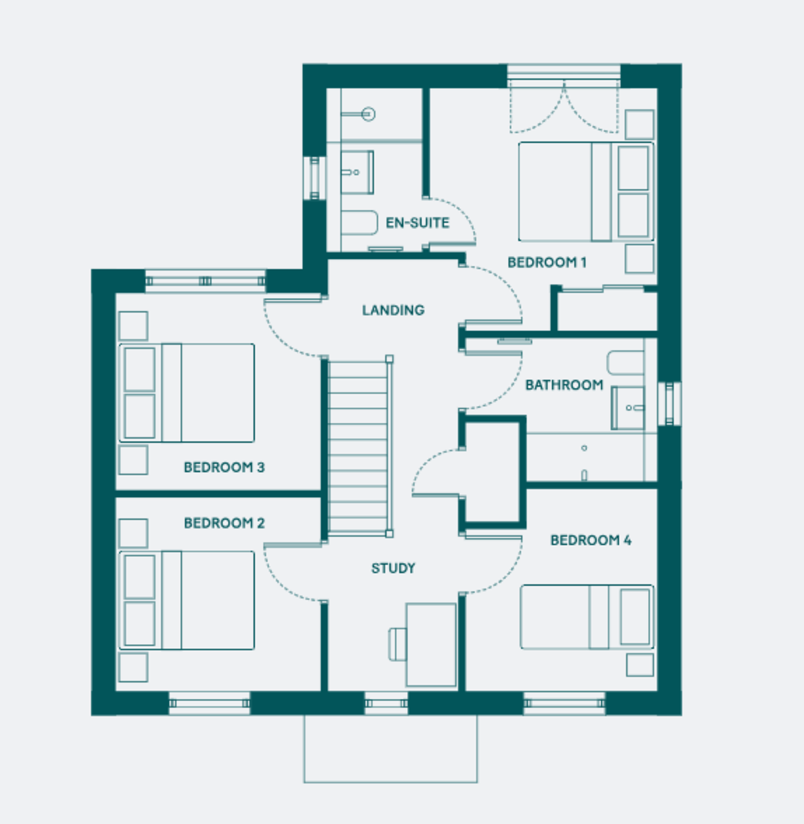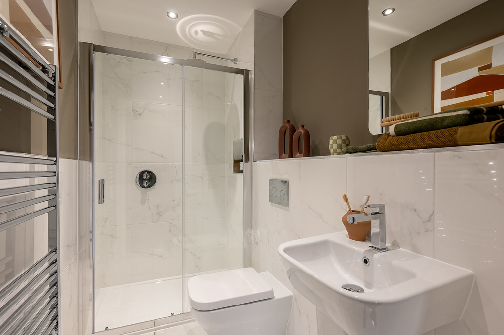 To the first floor, the generous master bedroom benefits from a built-in wardrobe and a private en-suite shower room. Bedrooms two, three and four are all well-proportioned, offering flexibility for family living. There is also a versatile additional space, ideal for use as a home office. A contemporary family bathroom, complete with bath and shower over, completes the first-floor accommodation.