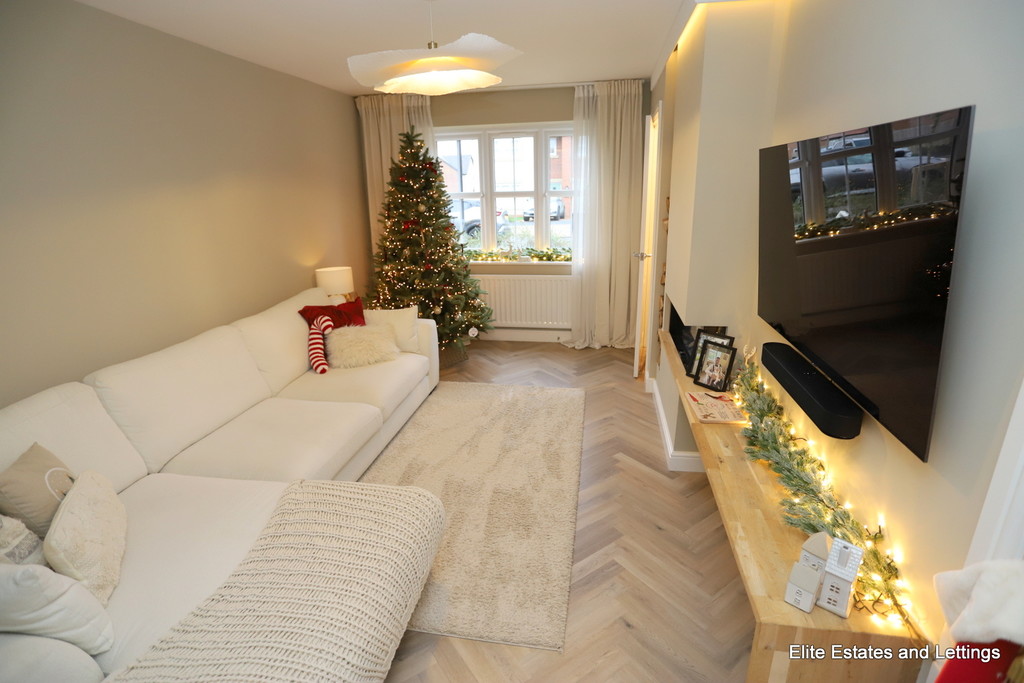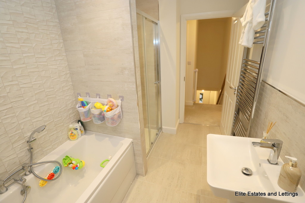 To the first floor, all three bedrooms are generously sized doubles with space for fitted wardrobes. The main bedroom features its own dressing area leading into a stylish en-suite complete with a large shower. The family bathroom offers a serene retreat, boasting a double-ended bath, separate shower enclosure and modern white sanitary ware.