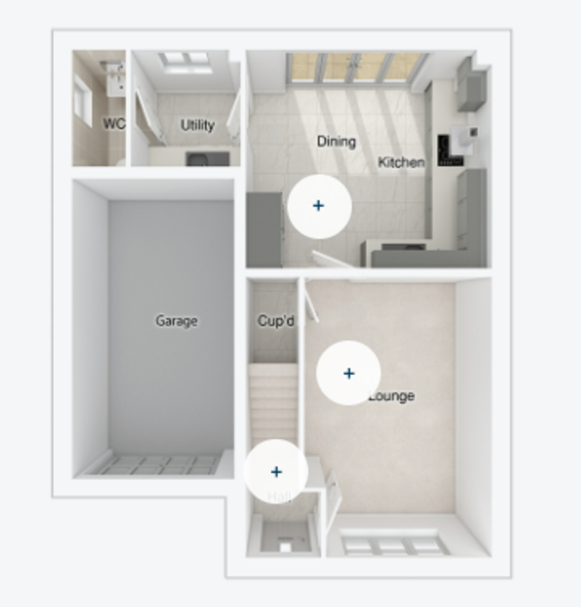 Upon entering, you are greeted by a bright and welcoming hallway. This leads into a spacious lounge featuring a large window that fills the room with natural light, creating an ideal space for relaxation. The contemporary open-plan kitchen and dining area follows, offering the perfect setting for both everyday living and entertaining. French doors open onto the patio, complemented by two full-height windows that enhance the light, airy feel of the room. The ground floor is further complemented by a utility room, a WC, and a practical storage cupboard.