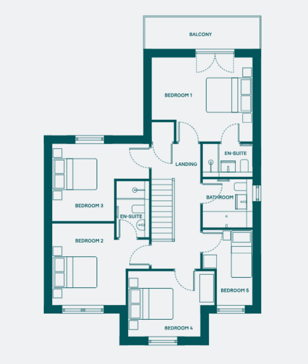 The second bedroom also benefits from its own en-suite, while bedrooms three and four are spacious doubles. The fifth bedroom is a generously sized single, ideal as a nursery, home office, or guest room. A sleek, contemporary family bathroom completes the first floor.